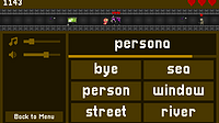 Added music and SFX sliders. Enemies now have hearts above their heads indicating how many flashcards it'll take to pass them. Words are now loaded from a CSV file. Added looooads of words. :)...